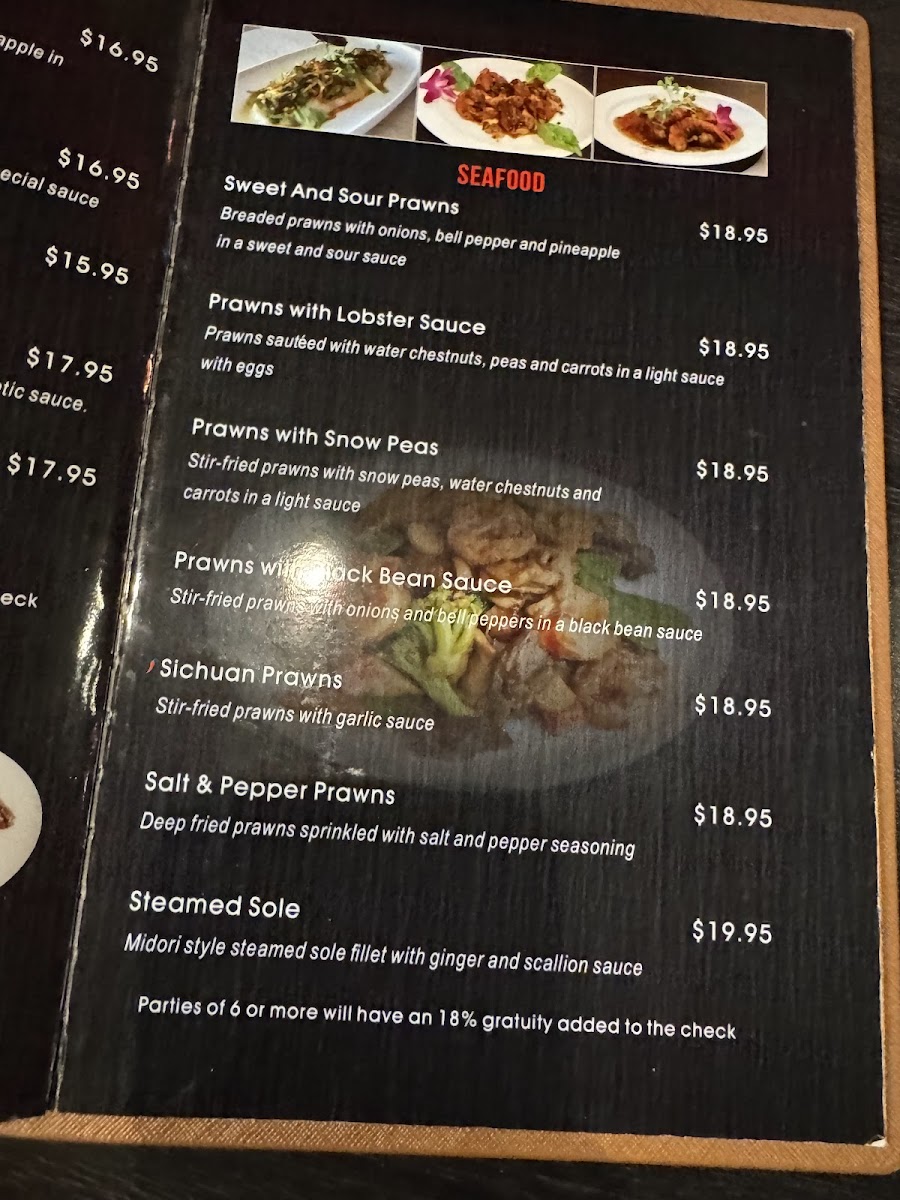 Midori Fine Asian Cuisine Menu